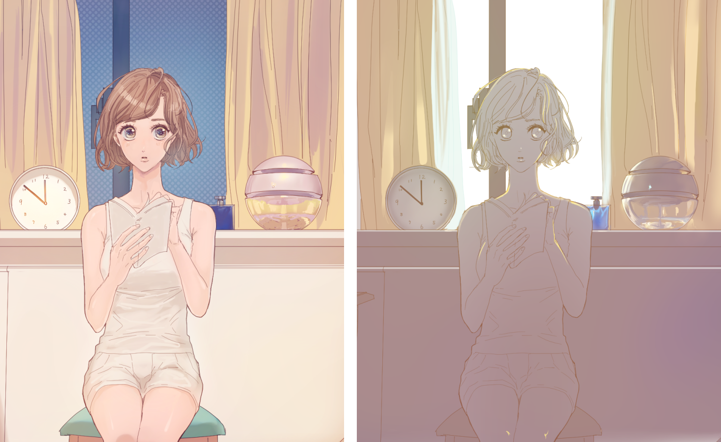 右:朝の窓から入ってくるバックライトライティング
